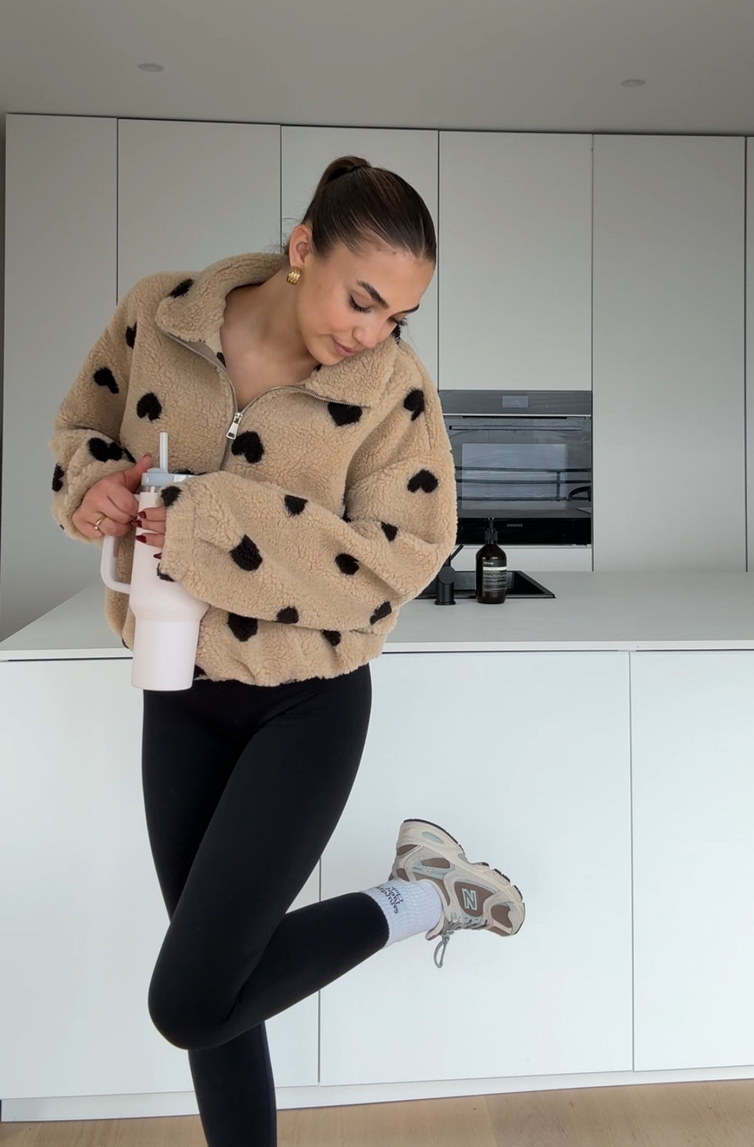 HEART TEDDY FLEECE JACKET CARAMEL